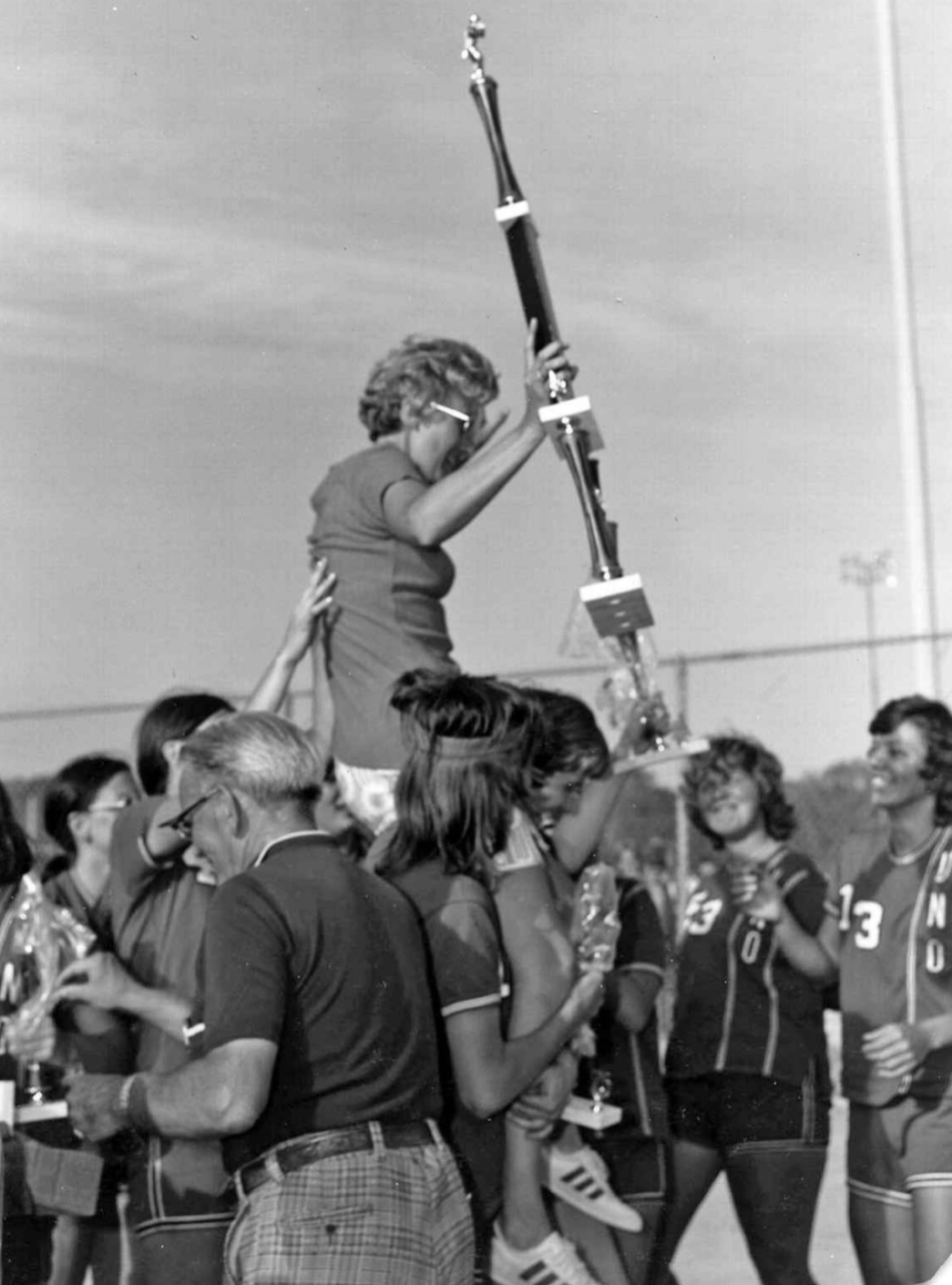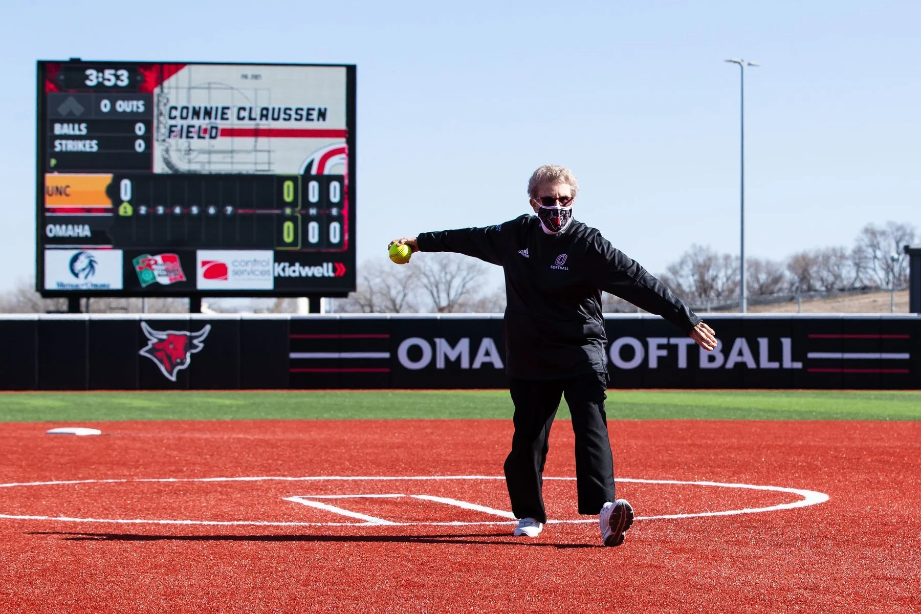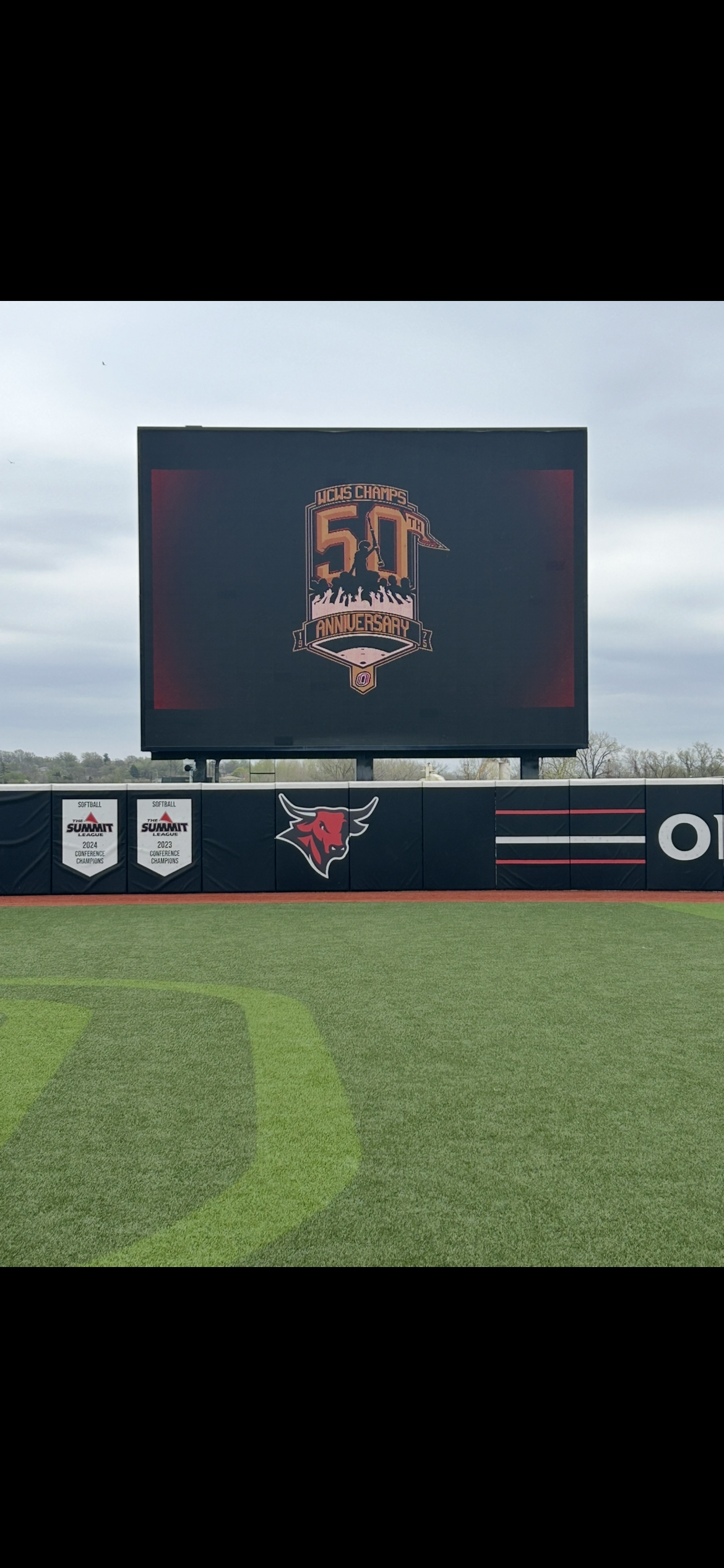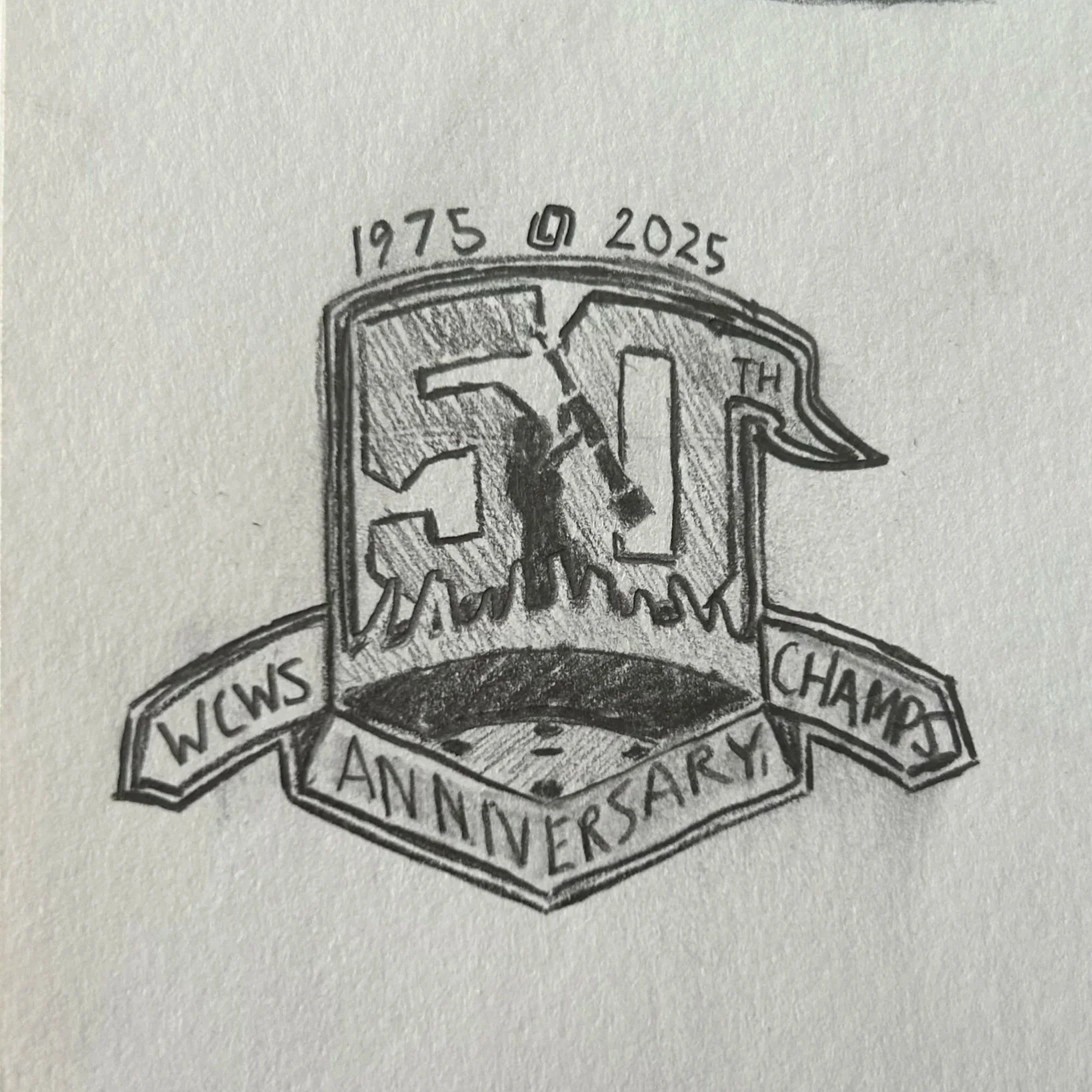 One of the greatest honors I’ve had during my time at UNO was to design the 50th Anniversary logo for the 1975 Women’s College World Series Championship team. The project took two months from ideation to completion, March to April of 2025, I worked in close collaboration with UNO Equipment Manager and Associate Athletic Director Bill Sanders to ensure ideal coloration and include pertinent design elements. The logo not only honors the team as a whole, but pays special tribute to Connie Claussen, the renowned coach, athletic director, and foremost champion of UNO Women’s sports. The logo features Claussen’s silhouette on the shoulders of her team, one of the most iconic photos in Mavericks Athletics history. Below it is a series of raised hands, representing the courageous young women who volunteered to play any sport Claussen asked them to, playing combinations of Volleyball, Basketball, and Softball, and some played all three. The gold standard was set in 1975 and their golden anniversary logo needed to live up to what these women accomplished, and seeing them standing proudly in front of it was better than I could have imagined.